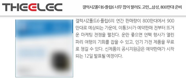 据Merichi证券报道,三星预计在今年年底前准备生产800万部Z Fold 6和Flip 6手机。据了解,零件订购量更是达到900万台的水平,但基本生产量保守认为是800万台。另一方面,市场研究公司Counterpoint Research预测,Z Fold 6和Flip 6的销量将比之前的机型增长30%,据说接近900万台。